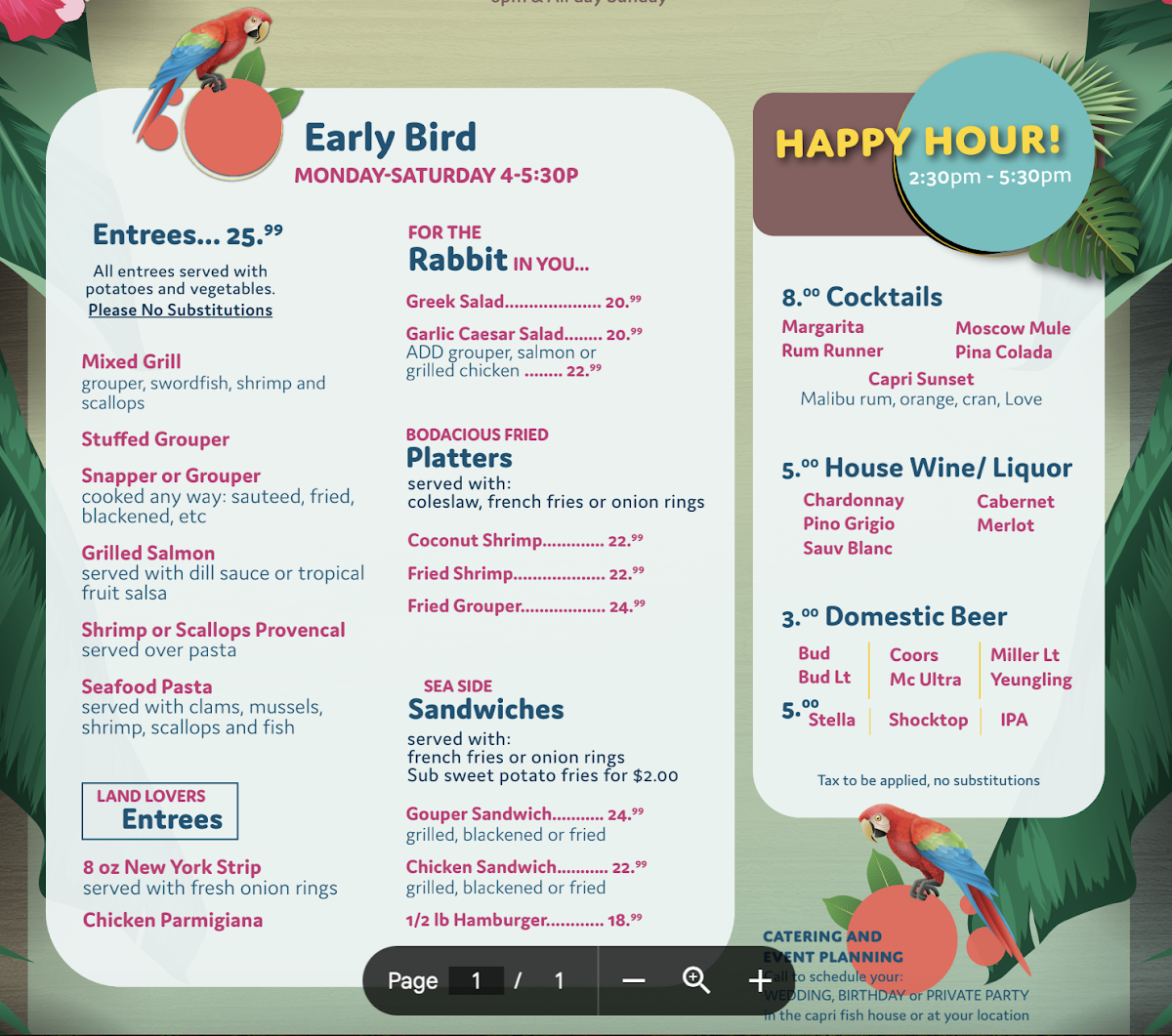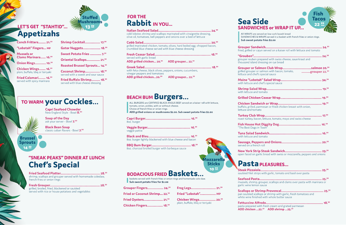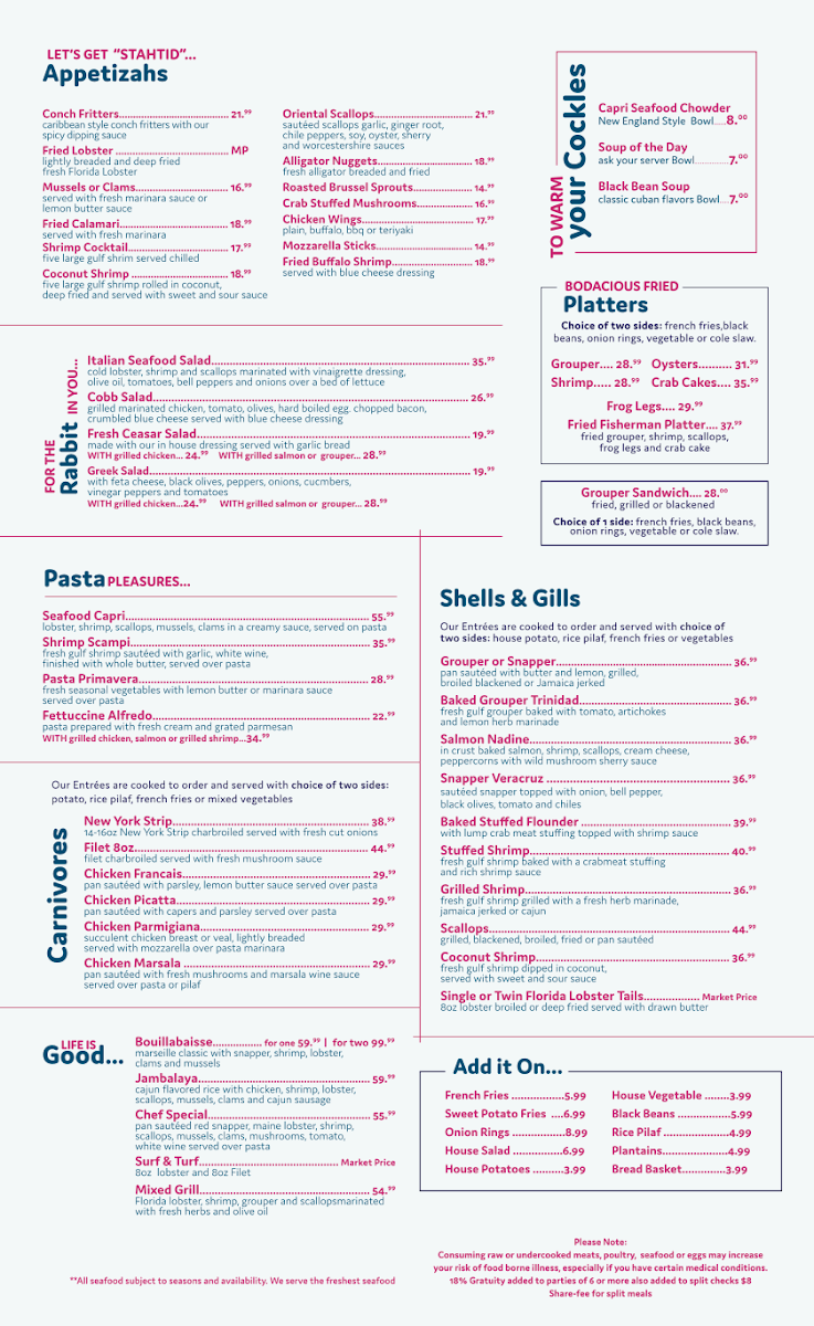Florida lobster, shrimp, grouper, and scallops marinated with fresh herbs and olive oil