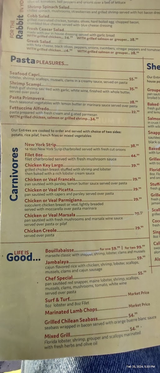 Lobster, shrimp, scallops, mussels, clams in a creamy sauce served over pasta