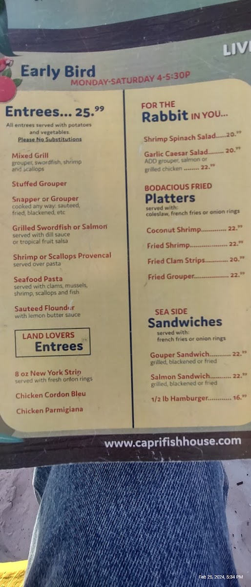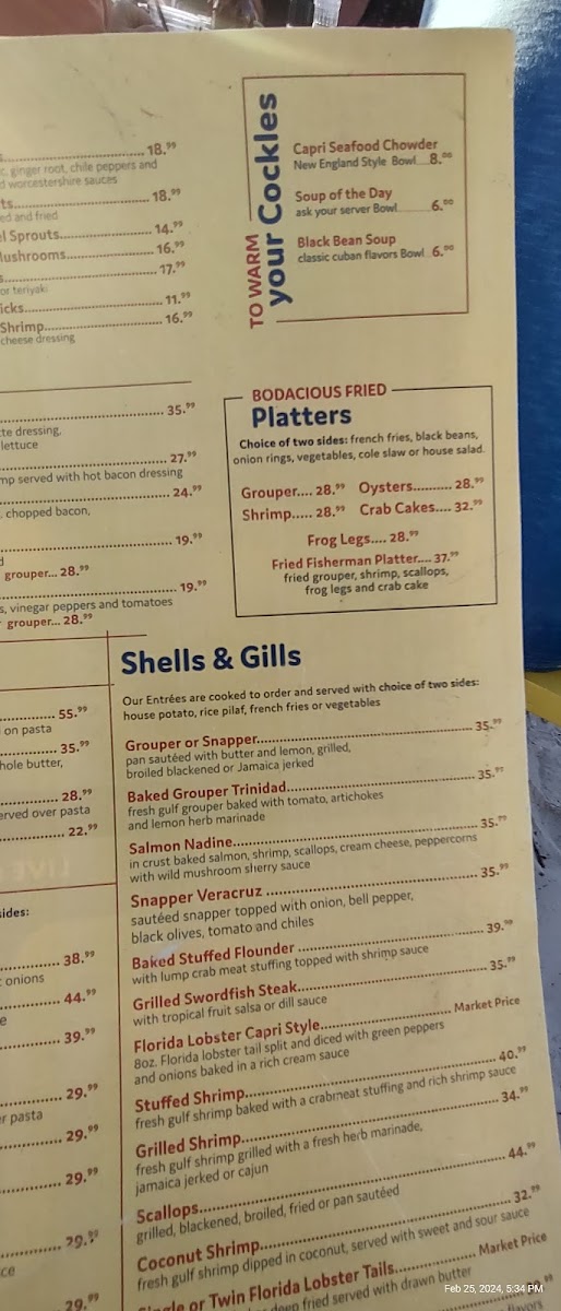 Fried grouper, shrimp, scallops, frog legs & crab cake